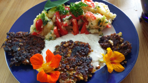 Linsenbratlinge mit einem leichten, frischen Kartoffelsalat | ||
